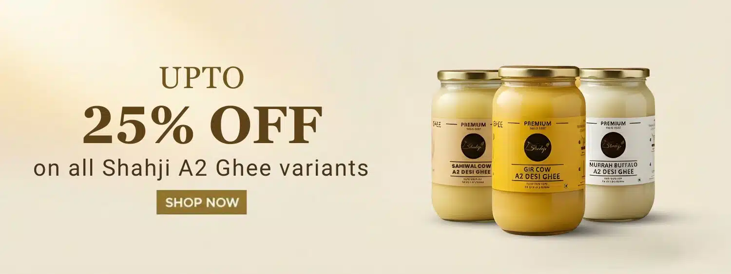 You can easily test it at home. Pure ghee solidifies naturally in cool weather and melts evenly when warm. It has a rich golden color, a grainy texture, and a mild, nutty aroma. There’s no artificial yellow tint or oily residue. Plus, Shahji Ghee is FSSAI approved and made in small batches, so purity is guaranteed.