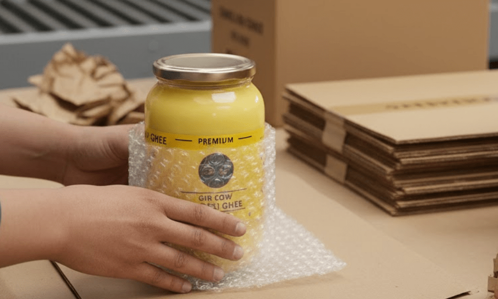 The filled jars are hygienically sealed, labelled, and packed with care before being delivered fresh from our farm to your home.