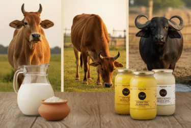 Our ghee is prepared using milk from Gir Cow, Sahiwal Cow, and Murrah Buffalo — known for their superior A2 protein and natural richness.